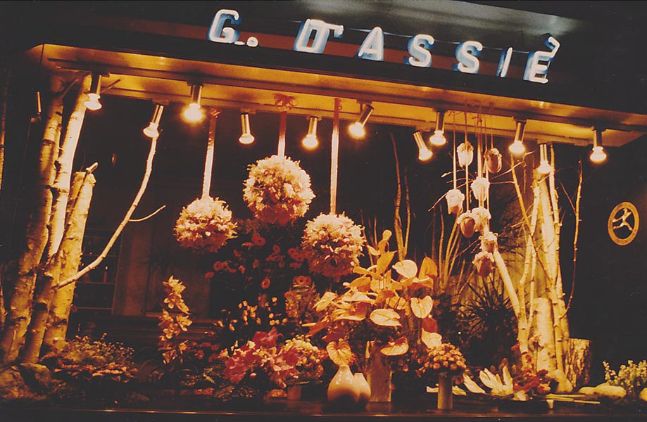 Dagli anni ’60 la fioreria è condotta da Guido D’Assié, figlio di Giuseppe, che ha ulteriormente sviluppato questa filosofia di lavoro, facendo della ricerca su forme e materiali il punto di partenza per proporre qualcosa di diverso e raffinato.